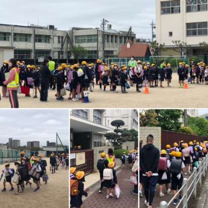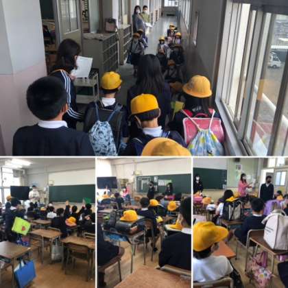 5時間目は地区別に集まりました。毎朝、各班の班長さんや副班長さんは、班のみんなが安心して通学できるようにがんばっています。ある班のリーダーは、歩幅を狭くしながら、ゆっくりと後ろに気を配りながら、集団登校する姿が見られます!さすがリーダーの姿です。特に1年生の子どもたちへの目配り、気配りする姿は素敵な光景です!