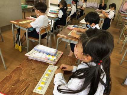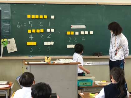 子どもたちは、ブロックを並べながら、数の概念を学んでいきます。