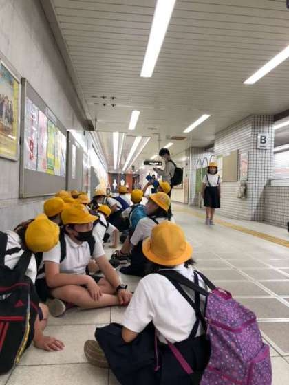 ?令和4年4月28日(木)5年 遠足9 これから鶴見緑地駅を出発します! みんな疲れてますが元気です!