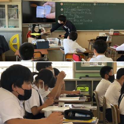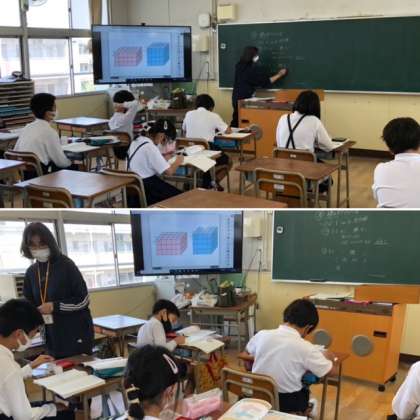 立体模型を使って、イメージを持ちます!図形は想像力がものをいいます!見えない部分にまで気を張り巡らせて、見ようとできるかどうか!