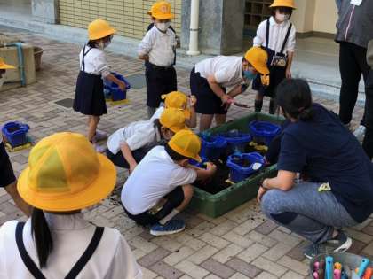 子どもたちは一人一人の鉢に砂を上手に入れています。