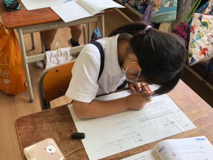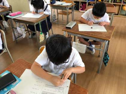 今日は定規を使って、長さを作図します!0に合わせて、点をとって、真っ直ぐに線を引くなど根気よく、丁寧にすることにチャレンジする子どもたちです!