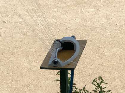 なんとこれ!スプリンクラー!でもただのスプリンクラーではありません!なんと、長方形の土地にムラなく水が行き渡る優れもの!管理作業員さんたちの手作りスプリンクラーです!
