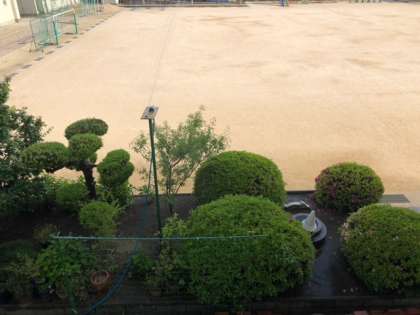 夕方の子どもたちのいない静かな校庭から、雨音のようなしらべが聞こえます?