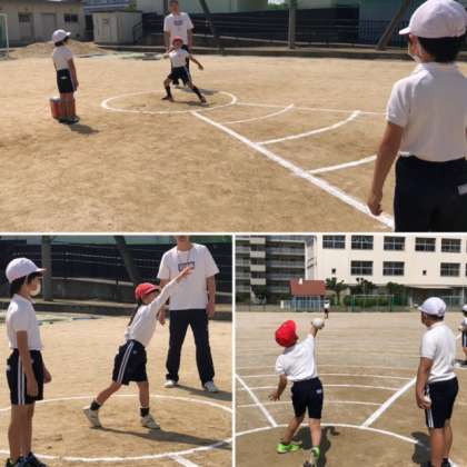 なかなか遠くに飛ばすのは難しそう!それでも、一生懸命に投げる姿がとてもかっこよかったです!