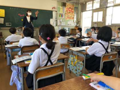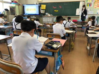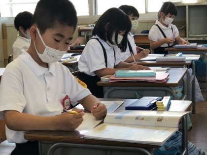どの子も一生懸命に先生が書いた黒板の字を書き写していました。
