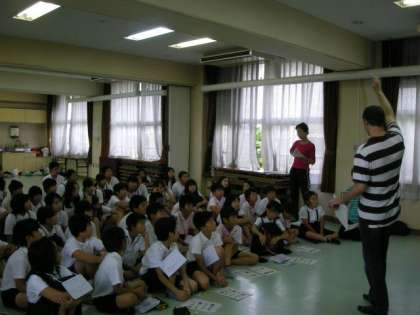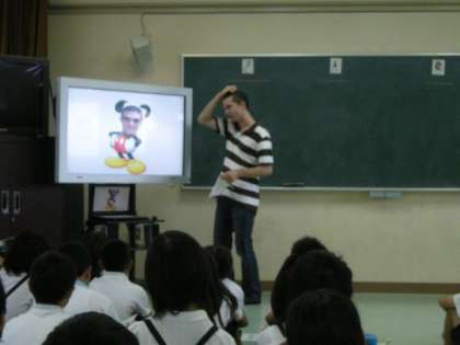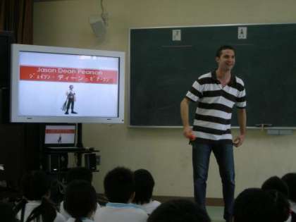 9月6日(金) 本日から外国人英語指導員のジェイソン先生に5.6年生が外国語活動を教えていただくことになりました。アメリカンジョークを交えながら楽しく自己紹介をしていただき、5・6年生の児童は楽しく、熱心に授業を受けることができました。