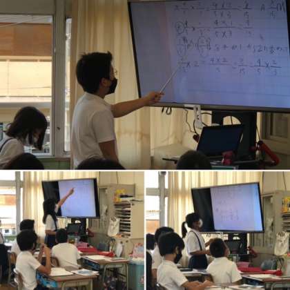 分数かける分数の答えがどうなるのか?計算の仕方を考えます!一人一人が、数や数直線、図や途中式、言葉などで考えます!これぞ!「自分で考えて行動する力」が育ちます!