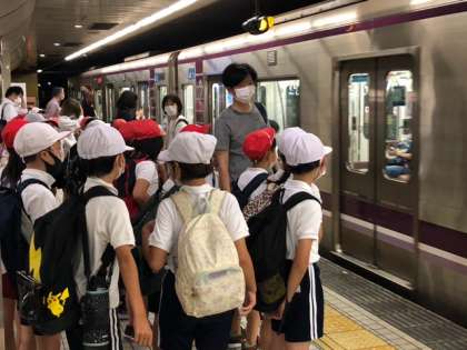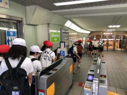 子どもたちは車内マナーもバッチリでした!60分の電車の旅でした!今緑地公園駅に到着です!これから公園へ向かいます!