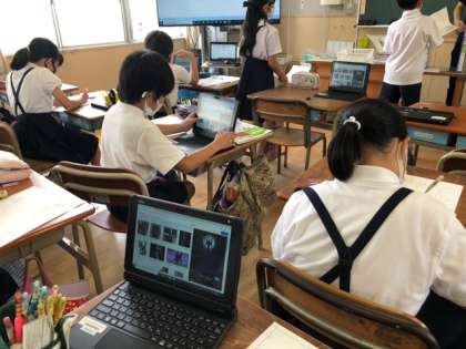 今日はその下絵にチャレンジしていました!題材選びはタブレットを活用して探します!昔なら考えられない光景ですね!それでもなかにはオリジナルのデザインを工夫している子どももいました!