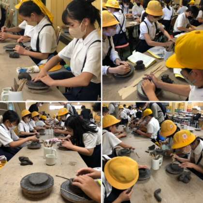 みんなが陶芸家に!底から作り出します!厚みが勝負!ロクロをうまく回すのがコツ!それぞれに個性あふれる作品が出来上がりそうです!1ヶ月から2ヶ月後に届く予定です!楽しみですね!