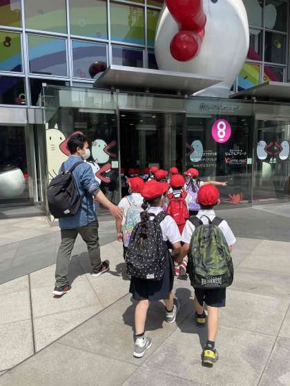 子ども達は車内マナーもよく守り、乗り換えを終えて扇町駅に到着です。そしてキッズプラザに到着しました。