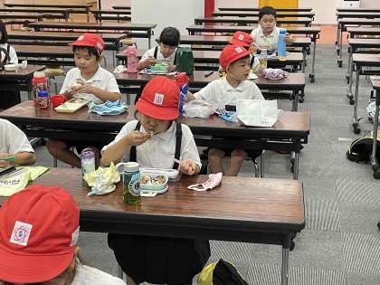 ランチタイムです。たくさん遊んで学んでお腹がペコペコです。