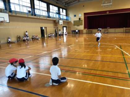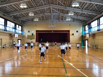 体育館に音声が鳴り響いています!子どもたちは20mシャトルランにチャレンジしていました!