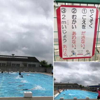 掲示物による感染症対応の啓発、徹底もしながら、プール学習の学びを安全安心に進めます!