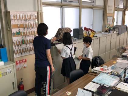 また、計画委員のみなさんはお昼休みに放送を流しています!うれしい言葉週間の案内メッセージです!マイクに向かって、緊張しながらもしっかりと伝えています!自分の言葉で語るっていいですね!