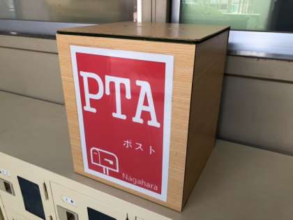 職員室前のロッカーの上に、PTA用の赤いポスト?がお目見えしました!