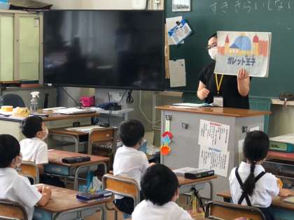ガレット王子の紙芝居を見ながら、食べ物の好き嫌いが体にとってどうなるのかを学びました!