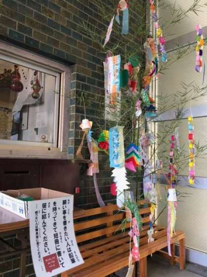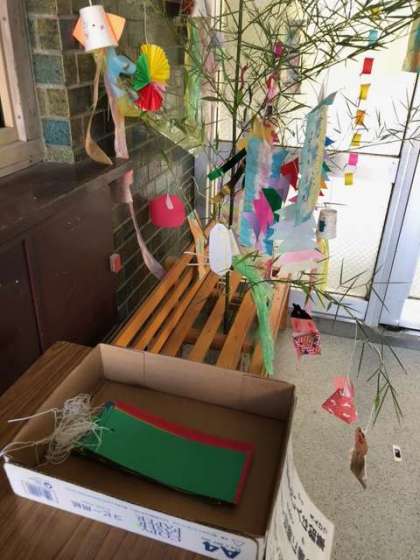 長吉第二幼稚園からの七夕飾りに便乗させたいただき、子どもたち(大人のみなさんも)にも、七夕の願いを飾ることになりました!