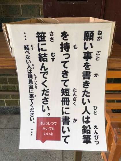 玄関に短冊が用意されていますので、各自で自由に願いを書いて、くくりつけてくださいね!