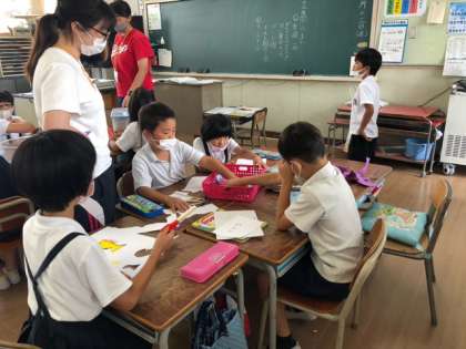 子どもたちは4つのグループに分かれて、遊びゲームを製作中です!