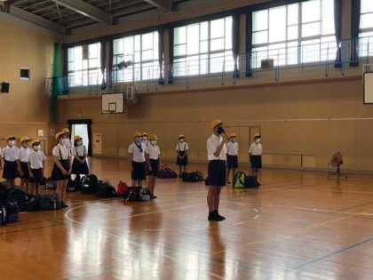 夏空の爽やかな朝!林間学習のスタートです!子どもたちは全員元気に出発式を迎えました。今日から3日間、自分たちの林間を自分たちでつくります!私からは3つの約束をしました!