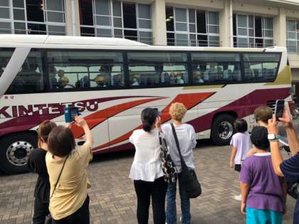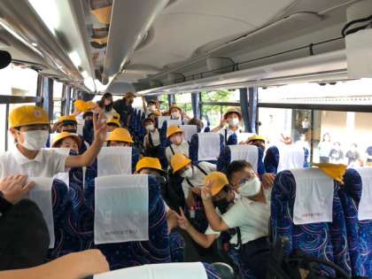 車内で元気にハイポーズ!みんな元気です!車内の換気もバッチリです!