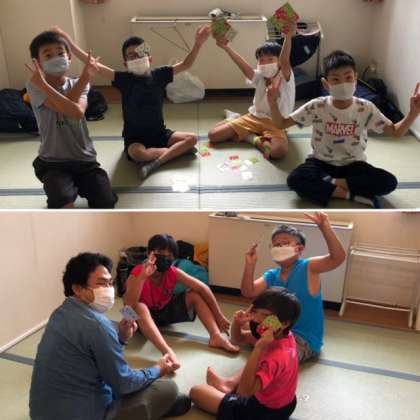 各部屋でくつろぎタイムを過ごす子どもたち!雨も止んだようで、星が見られるかな?