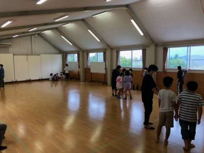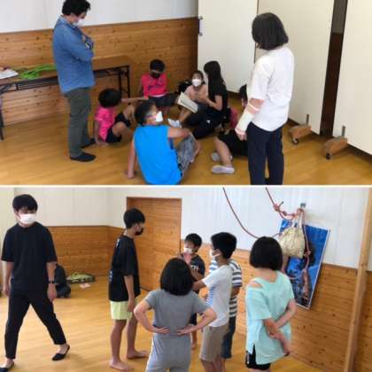 夜のキャンプファイヤースタンツに向けてのグループでリハーサルをします!