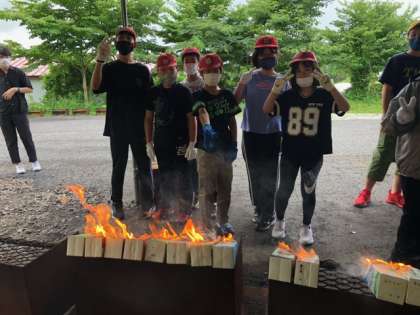 さあ!火にかけます!牛乳パックが燃え上がりきるとできあがりです!