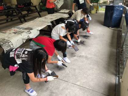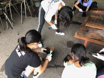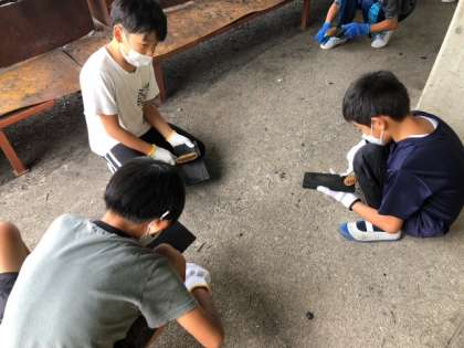 まずはすすおとし!根気のいる作業ですが、ここできっちりとすすを落とすことで、できあがりが違います!コツコツがんばる子どもたちです!