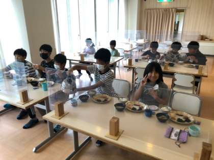 黙食のため、元気なさそうに見えますが、しっかり食べている子どもたちです!