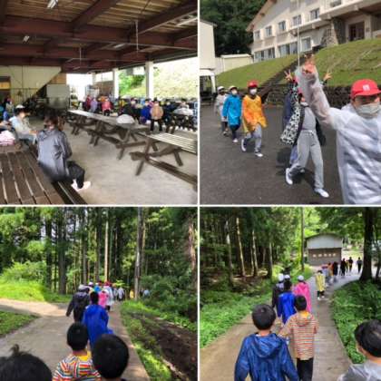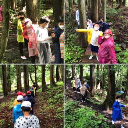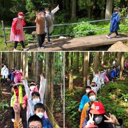 活動直前までの雨模様が活動が始まるやいなや!晴れ!レインコートが必要なかったです!ナイトハイクの予定だった道をみんなで散策しました!「明るくてよかった」と安堵している子どももいました!