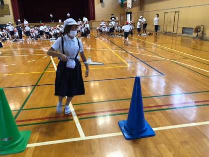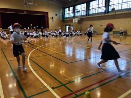ゲームは「バトミントンの羽根運びリレー」でした!