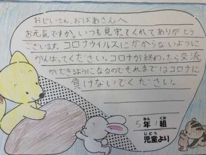 全学年で取り組んでいるこの活動!その子のその子らしさが表現されていて、とても素敵な贈り物ができています!封筒に入れて届けます!