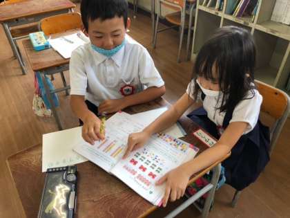 1人で考えたあとは、近くのお友だちと教え合います!これぞ学び合い!