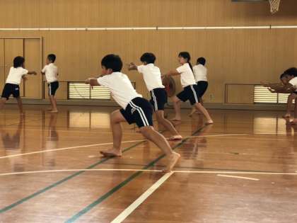 子どもたちの元気な声が体育館から響いてきました!ソーランソーランの掛け声の中、躍動する子どもたち!そして、それを見守る幼稚園の先生たちでした!