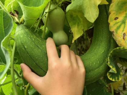 また、学習園に大きな怪物あらわるです!なんとこれ!ヘチマ!奥にはひょうたんです!あまりの大きさにビックリでした!