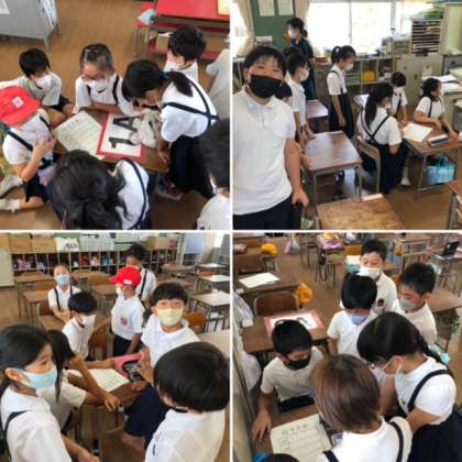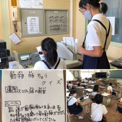 今朝のスマイル集会は「動物あてクイズ」です!ある動物についてのヒントをいくつか出題して、なんの動物なのかを当てます!子どもたちは、グループで相談しながら、答えを考えます!
