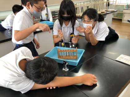 ものの溶け方の学びです!塩酸と金属の反応について実験した子どもたち!