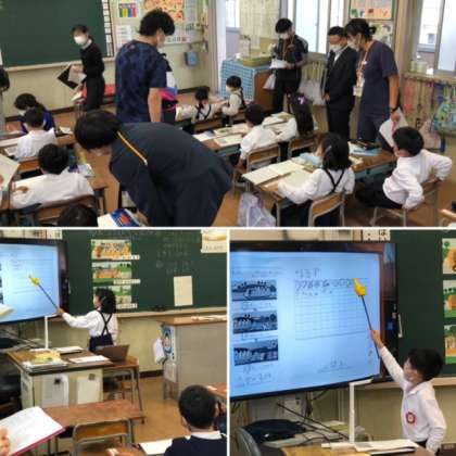 式はもちろん、まる図やブロックを使って、考え方を自分から表現する子どもたち!友だちともペアになって伝え合います!また、みんなで話し合うために、前に出てきてミニ先生になって説明します!どの子もとても成長した姿を見せてくれました!子どもたちの可能性はすばらしいですね!みんな!よくがんばったね!