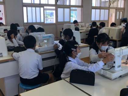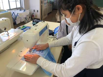 家庭科室にミシンの音が鳴り響いています。