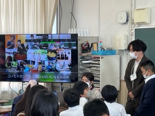 5回に渡って取り組んできた、SDGs12「つくる責任とつかう責任」であるフードロス問題のCM動画制作の発表会が行われました。双方向通信を使って、企業の方にも動画を観てもらいました。