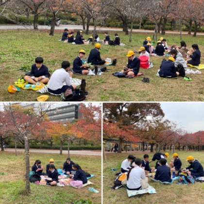 外ではランチタイムです!お弁当を作ってもらったおうちのみなさんに感謝の気持ちでいただいてまーす!