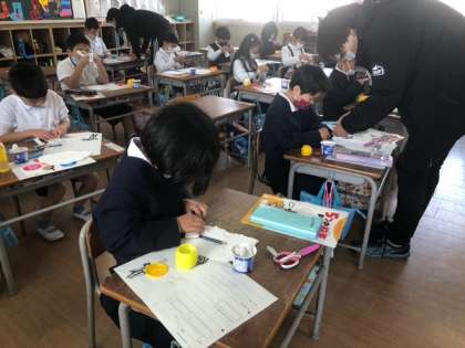 ハサミではなく、手を使って切ることで、まゆげ独特の輪郭が表現されます。子どもたちは指先を上手に使って、根気よく作業に集中していました!