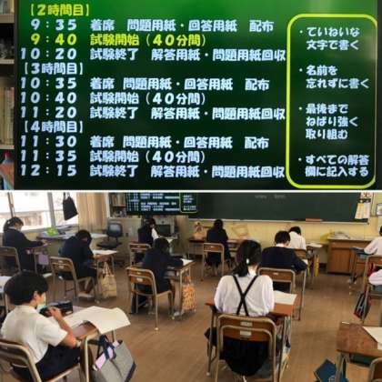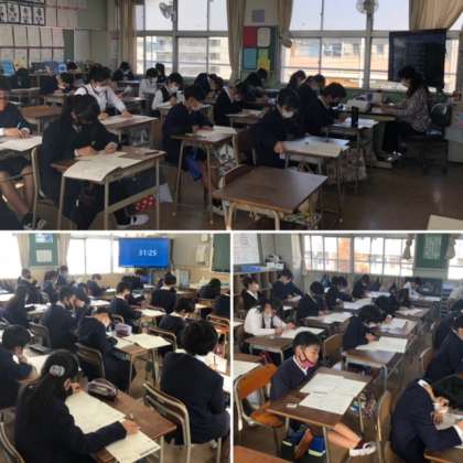 3年生にとっては初めての経年テストです。どの教室もシーンと静まりかえり、鉛筆の走る音だけが教室から聞こえてきます。