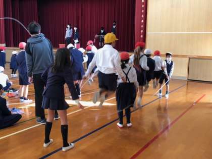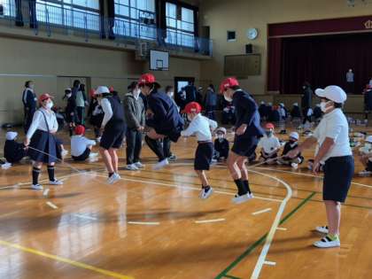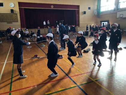 息を合わせることが勝負の分かれ目!これがなかなか難しかったようです。もちろん長く跳べることにこしたことはありませんが、それよりも縦割りグループのみんなのつながりがより深まることが大切です。