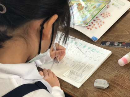 子どもたちはまとまりの学びをしています。黒板の文字をノートに書き写すスピードもとてもはやくなってきました。成長した姿を見るとうれしくなりました。