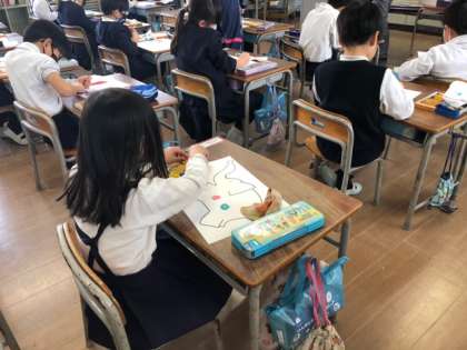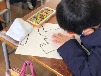 子どもたちは自分のイメージをそれぞれが膨らませながら、線描から色つけにチャレンジしています。