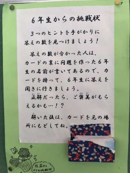 5年生の教室前ローカにこのような張り紙を発見しました。